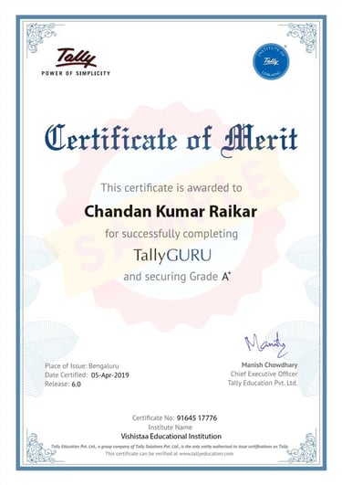 All Tally Certification courses are authorized and validated.